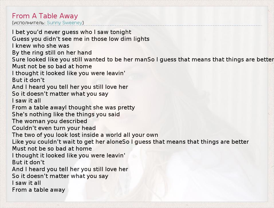 А как ты думаешь, о чем песня "From A Table Away" ?