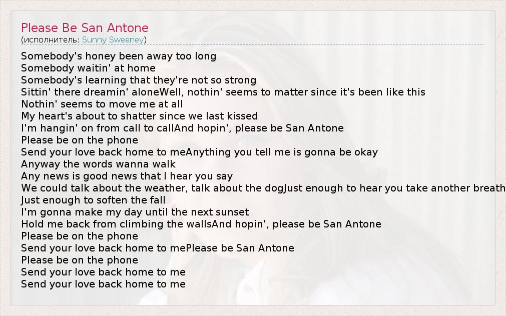 А как ты думаешь, о чем песня "Please Be San Antone" ?