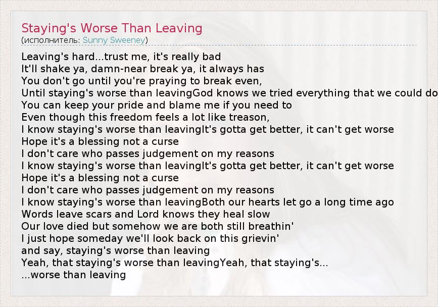 А как ты думаешь, о чем песня "Staying's Worse Than Leaving" ?