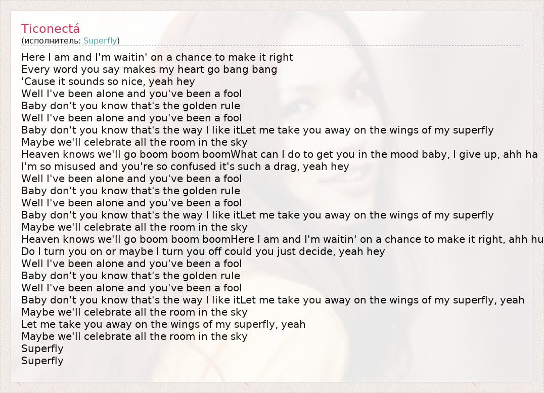 Это интересно:Superfly - японская поп/рок исполнительница. Изначально Superfly был дуэтом Shiho Ochi (вокал) и Koichi Tabo (гитара), который образовался в 2004 году. Официальный дебют состоялся в 2007 году с синглом Hello Hello. В этом же году Koichi Tabo покидает группу. Однако Shiho Ochi активно продолжает работать и одна. Уже первый альбом, который так и называется - Superfly - достиг первого места в чарте Oricon, а второй - Box Emotions... продолжение