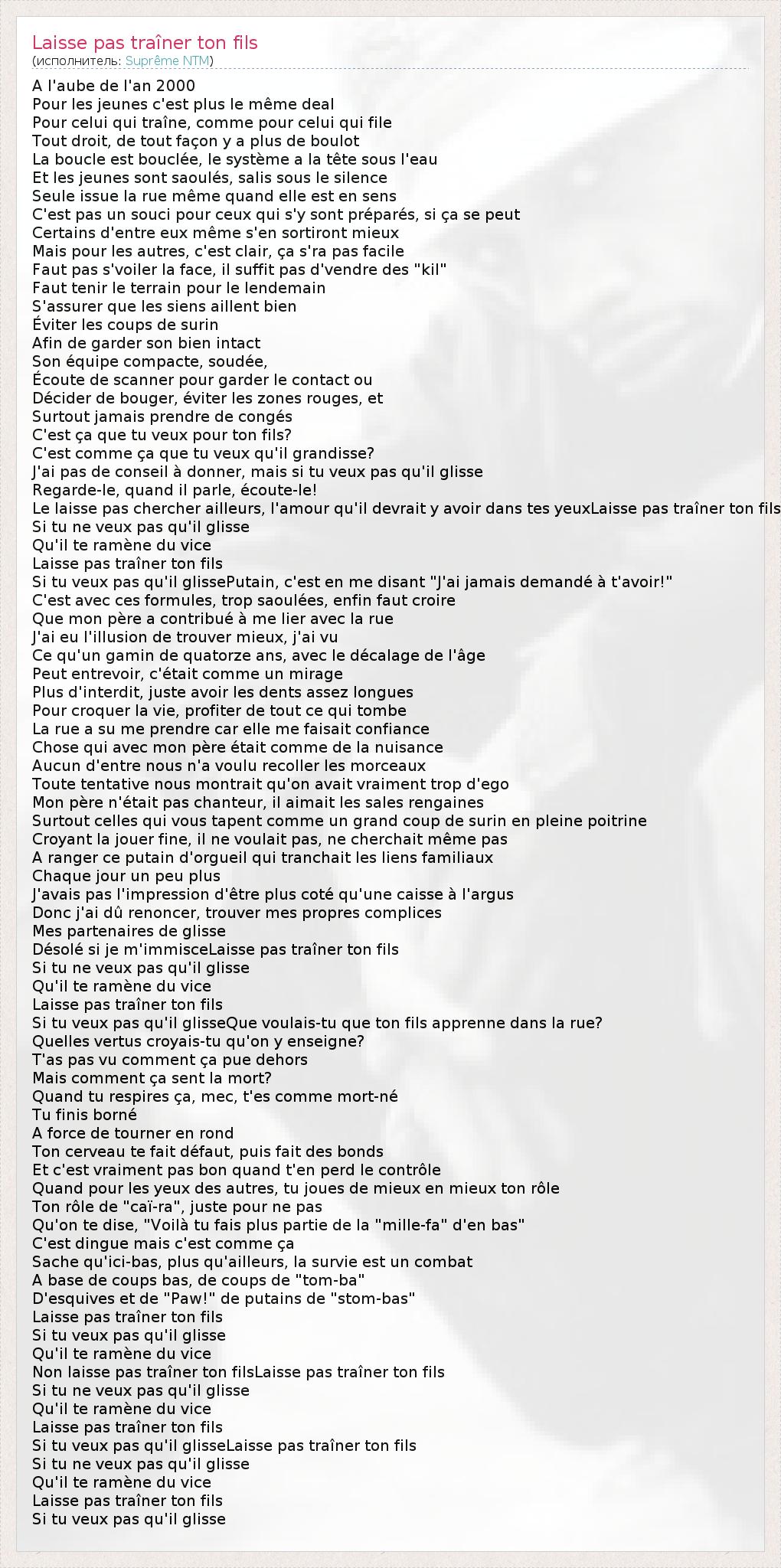 А как ты думаешь, о чем песня "Laisse pas traîner ton fils" ?