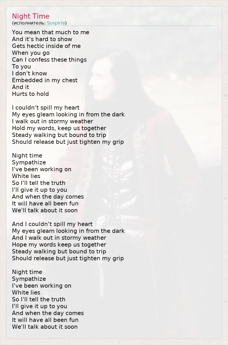 А как ты думаешь, о чем песня "Night Time" ?