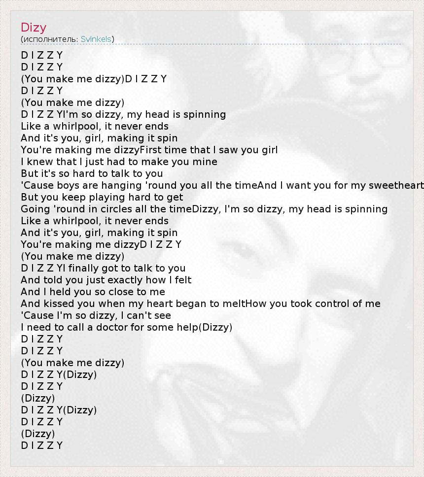 Going 'round in circles all the timeDizzy, I'm so dizzy, my head is spinning