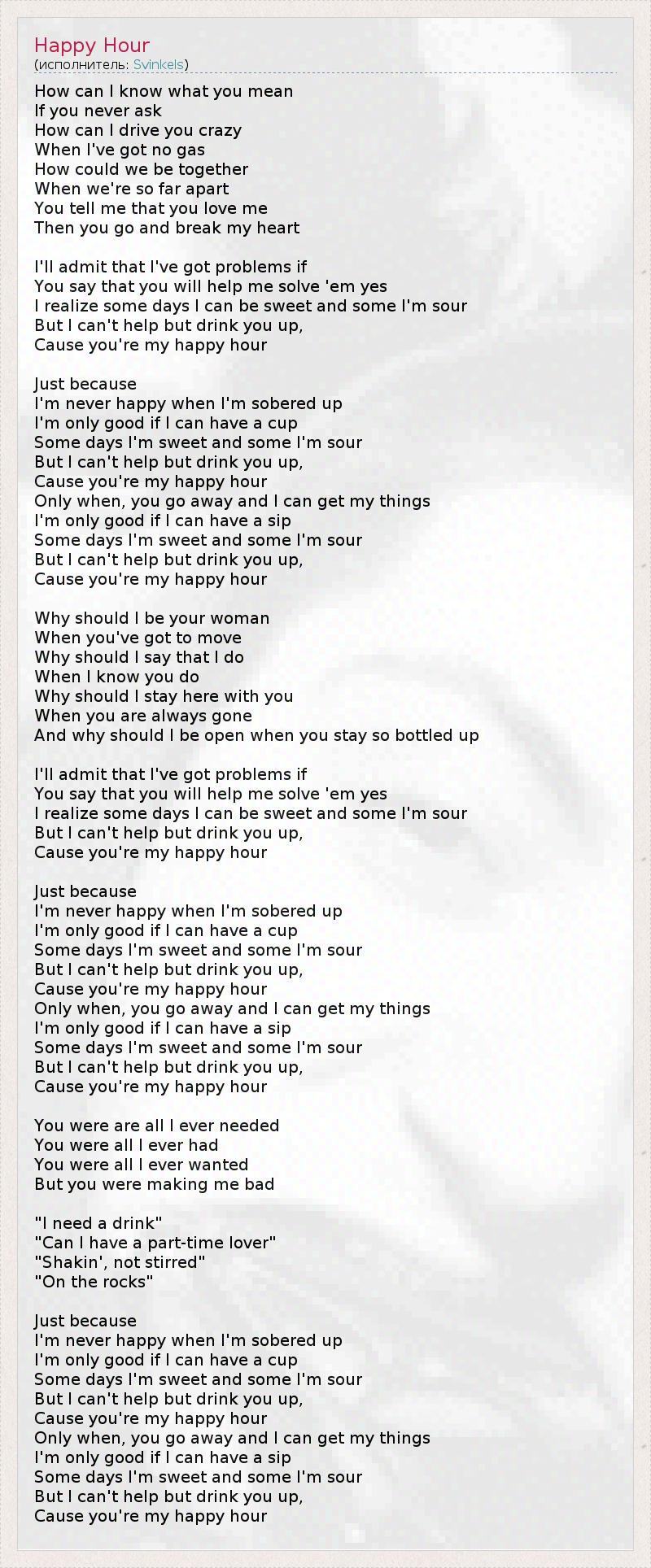 А как ты думаешь, о чем песня "Happy Hour" ?