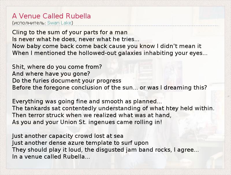 А как ты думаешь, о чем песня "A Venue Called Rubella" ?