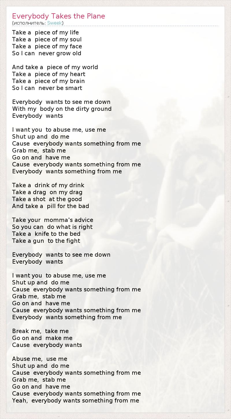 ГлавнаяИсполнителиSweekEverybody Takes the Plane