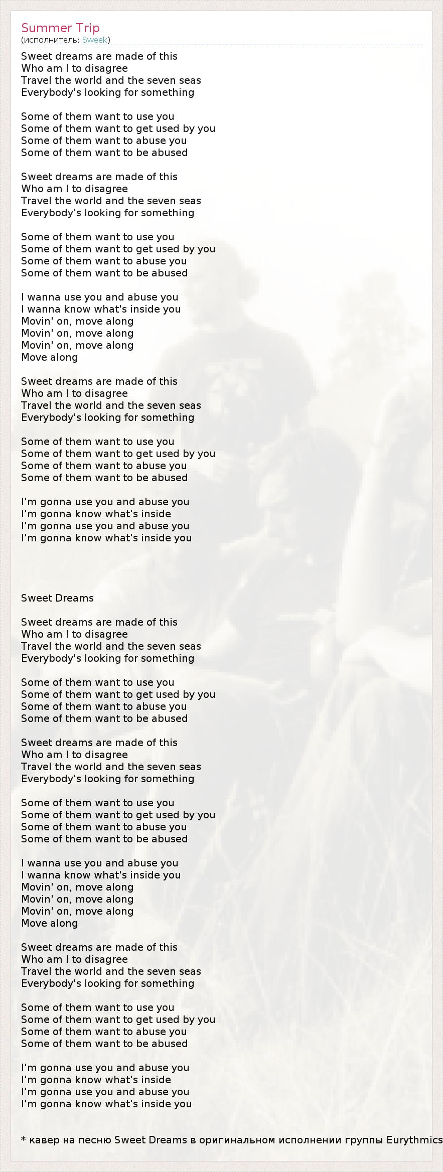 * кавер на песню Sweet Dreams в оригинальном исполнении группы Eurythmics