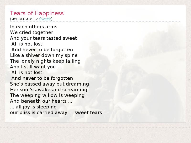 А как ты думаешь, о чем песня "Tears of Happiness" ?