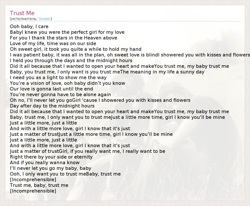 Trust me, baby, trust me