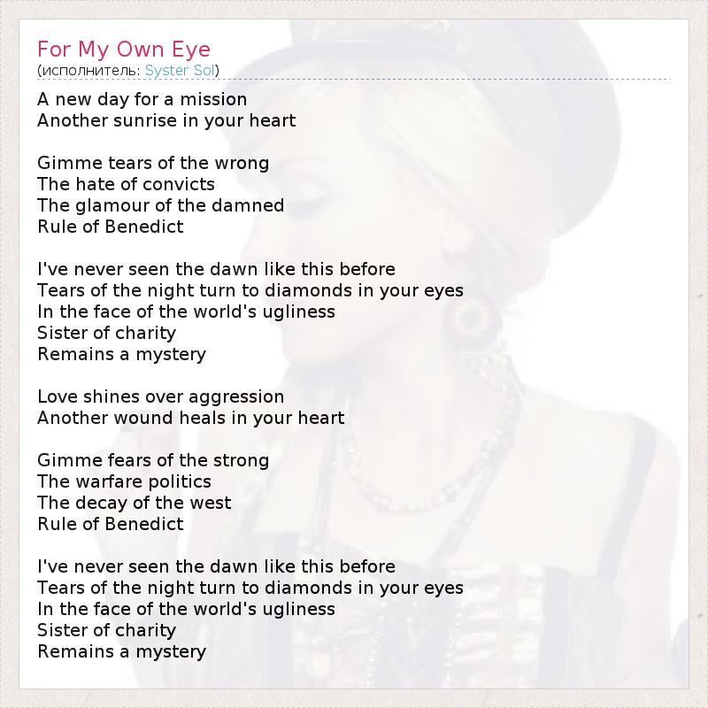 А как ты думаешь, о чем песня "For My Own Eye" ?