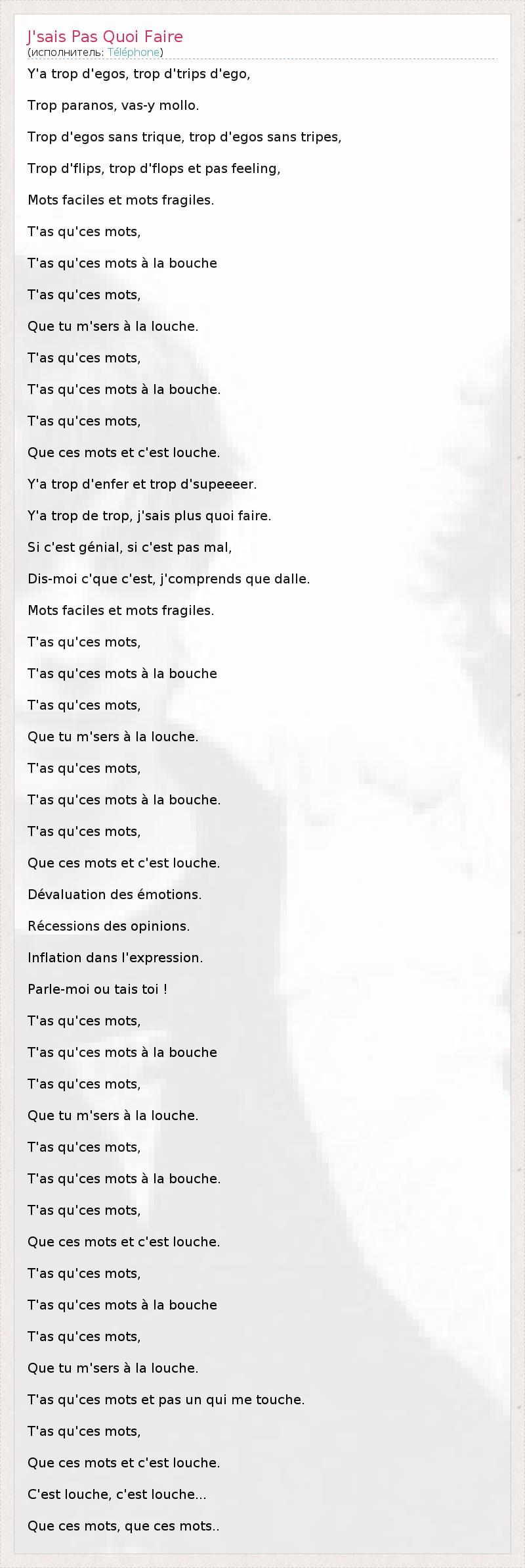 А как ты думаешь, о чем песня "J'sais Pas Quoi Faire" ?