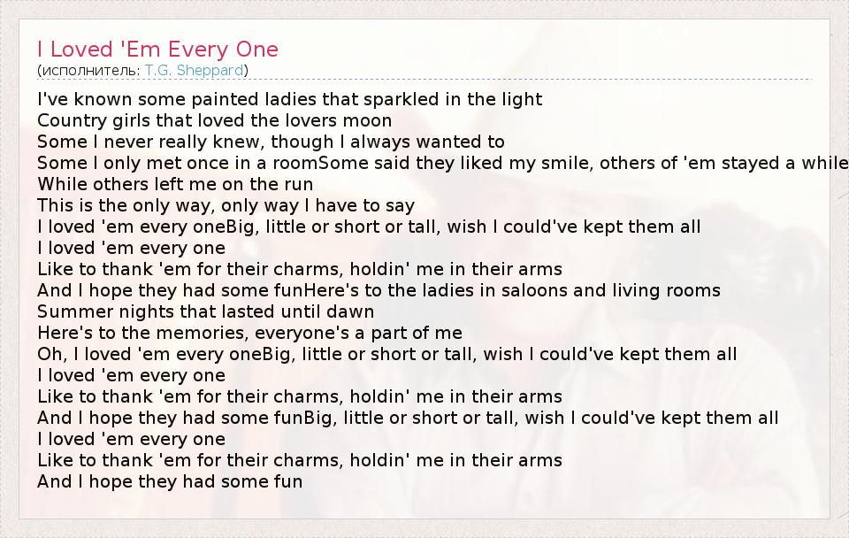 А как ты думаешь, о чем песня "I Loved 'Em Every One" ?