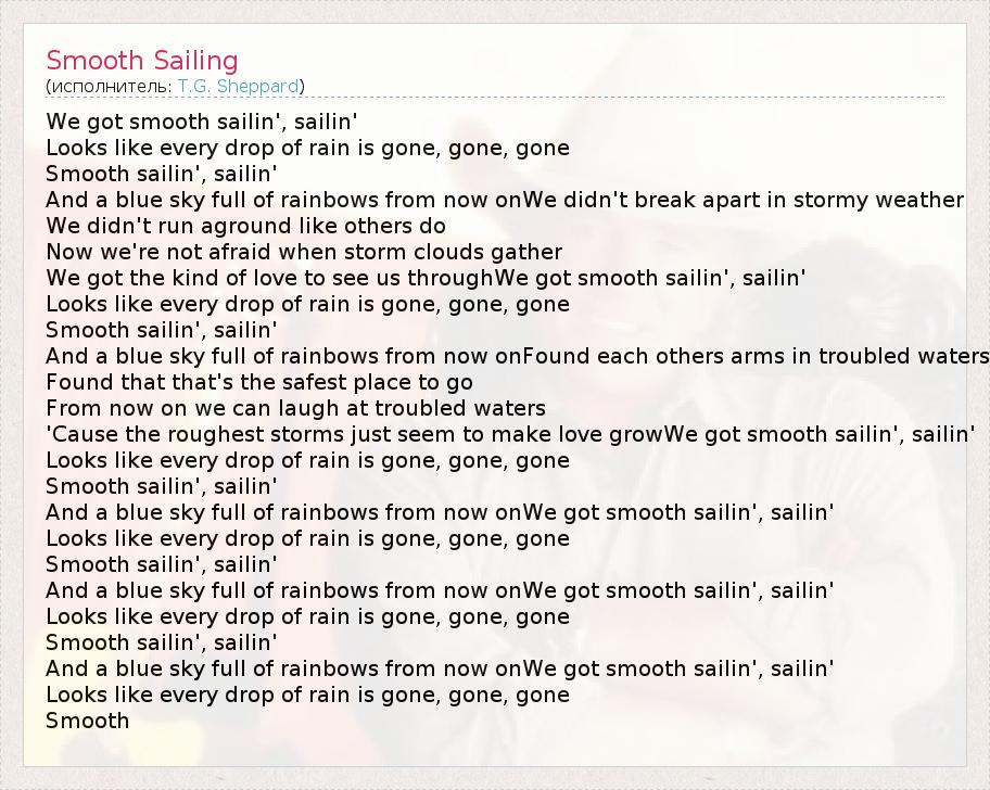 А как ты думаешь, о чем песня "Smooth Sailing" ?