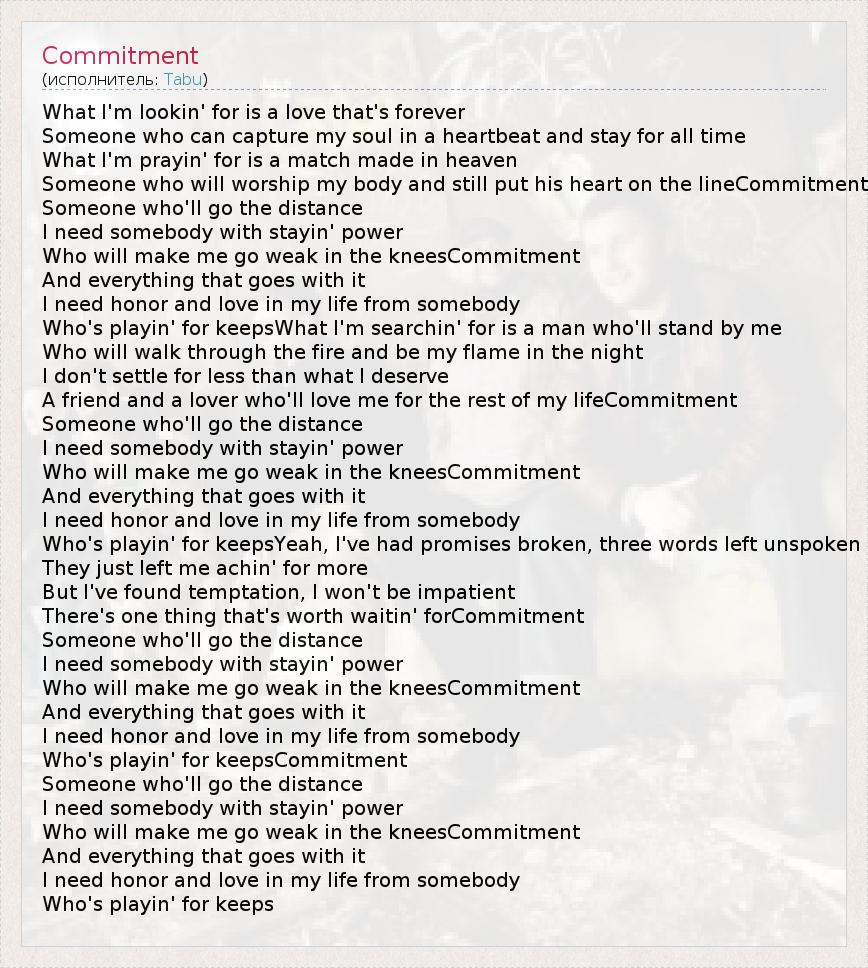 А как ты думаешь, о чем песня "Commitment" ?