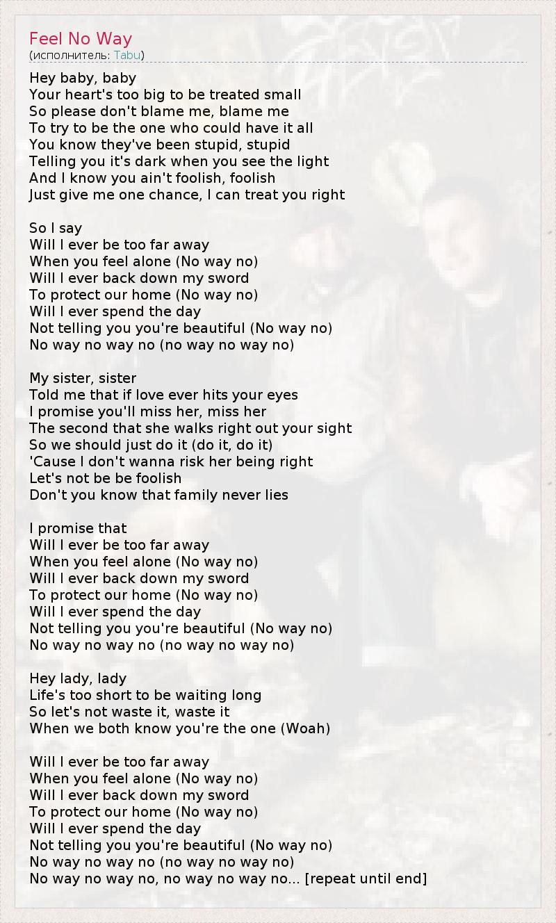 No way no way no, no way no way no... [repeat until end]