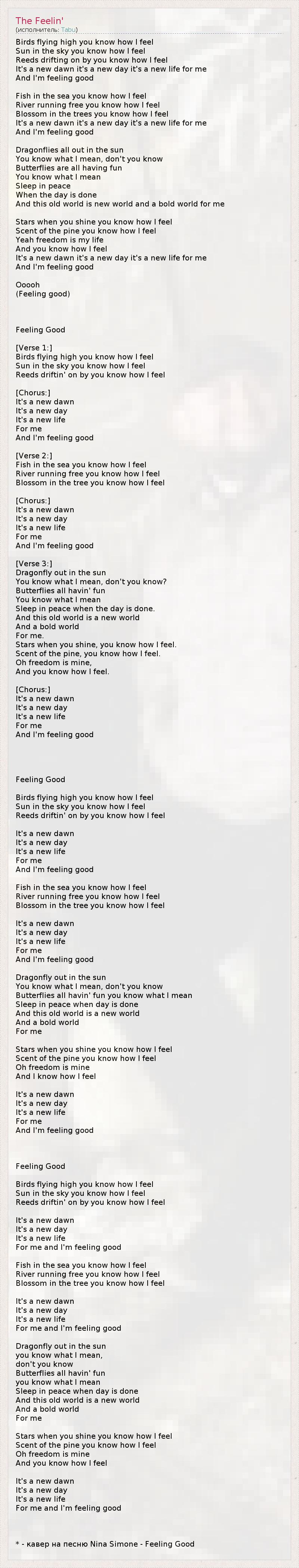 А как ты думаешь, о чем песня "The Feelin'" ?