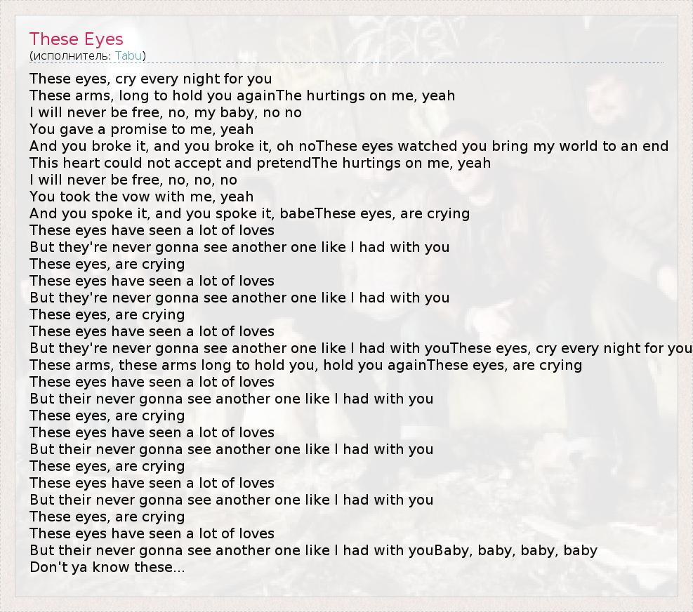 А как ты думаешь, о чем песня "These Eyes" ?