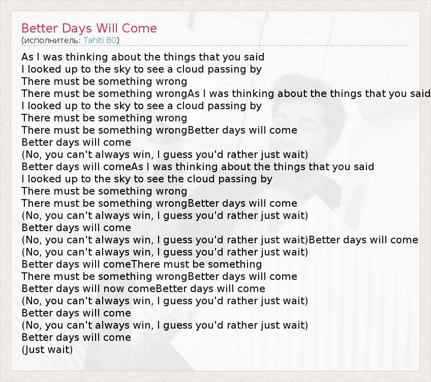 А как ты думаешь, о чем песня "Better Days Will Come" ?
