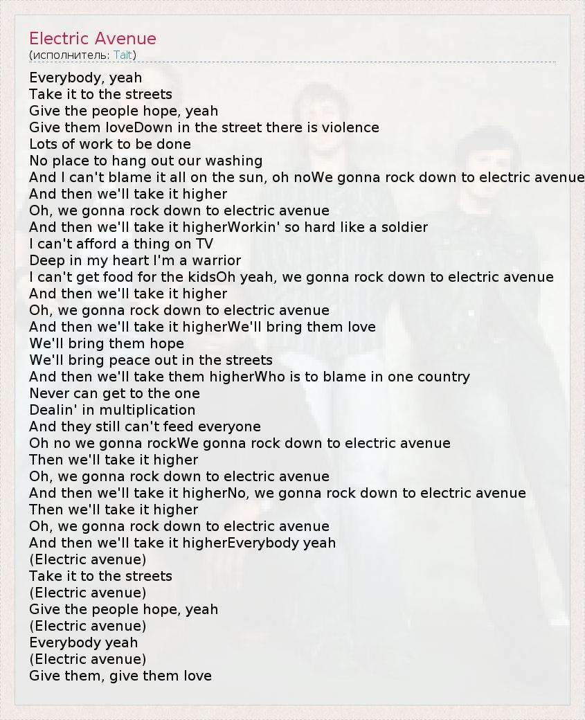 А как ты думаешь, о чем песня "Electric Avenue" ?