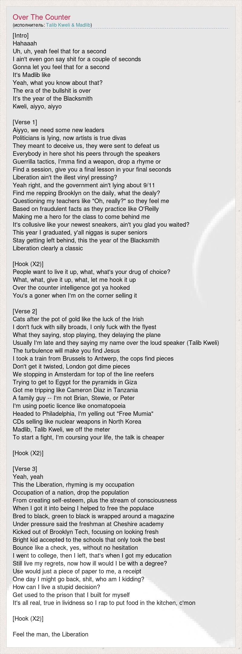 А как ты думаешь, о чем песня "Over The Counter" ?