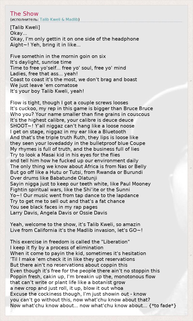 Yeah, welcome to the show, it's Talib Kweli, so amazin