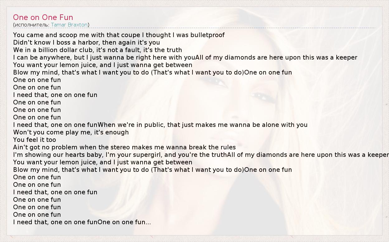 А как ты думаешь, о чем песня "One on One Fun" ?
