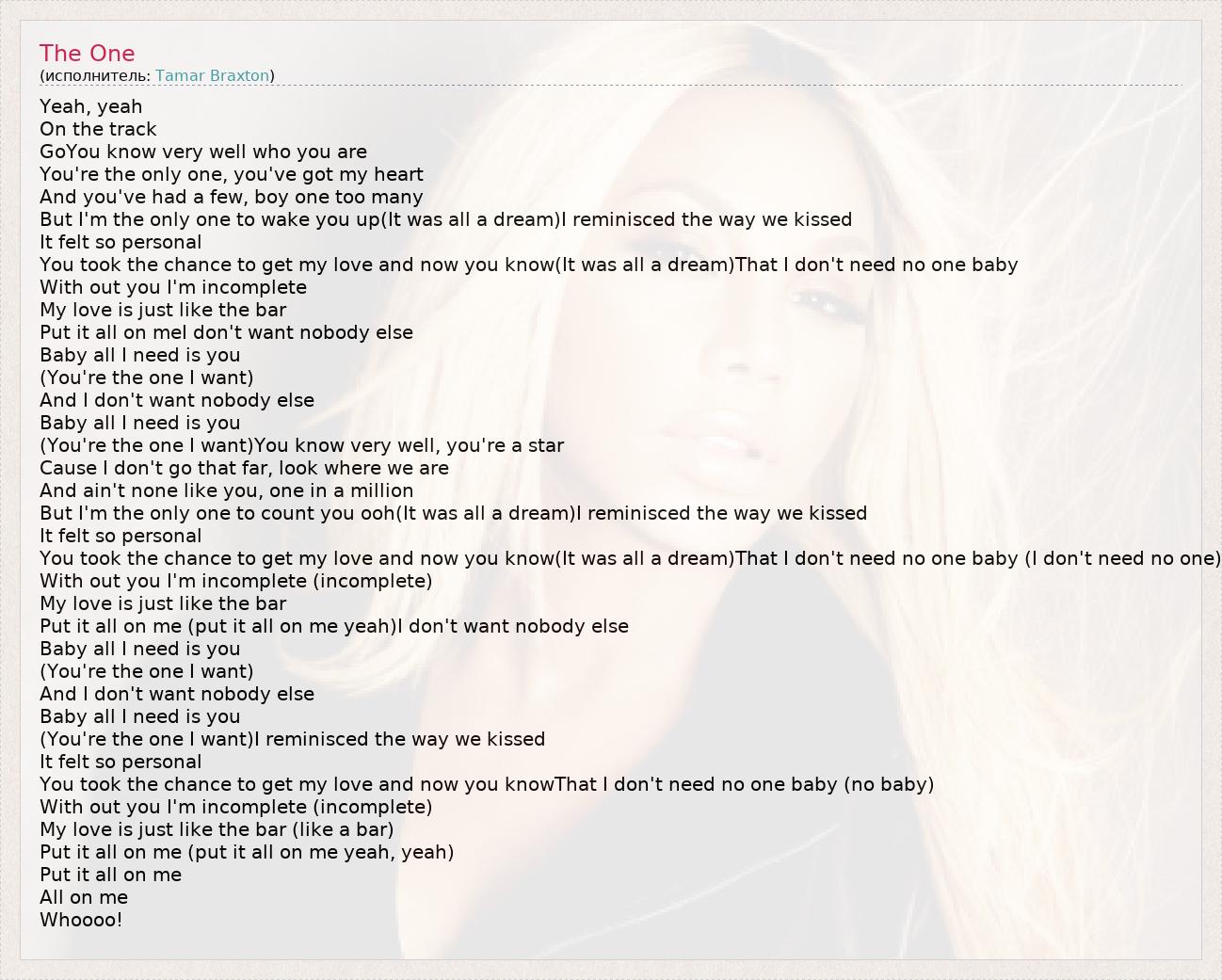 You took the chance to get my love and now you knowThat I don't need no one baby (no baby)