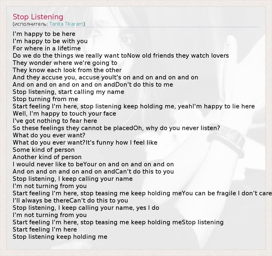 А как ты думаешь, о чем песня "Stop Listening" ?