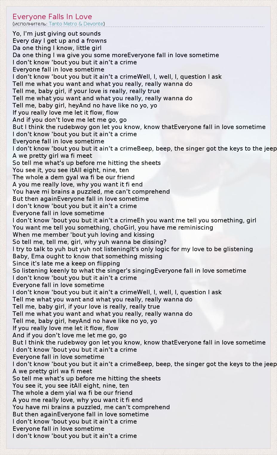 А как ты думаешь, о чем песня "Everyone Falls In Love" ?