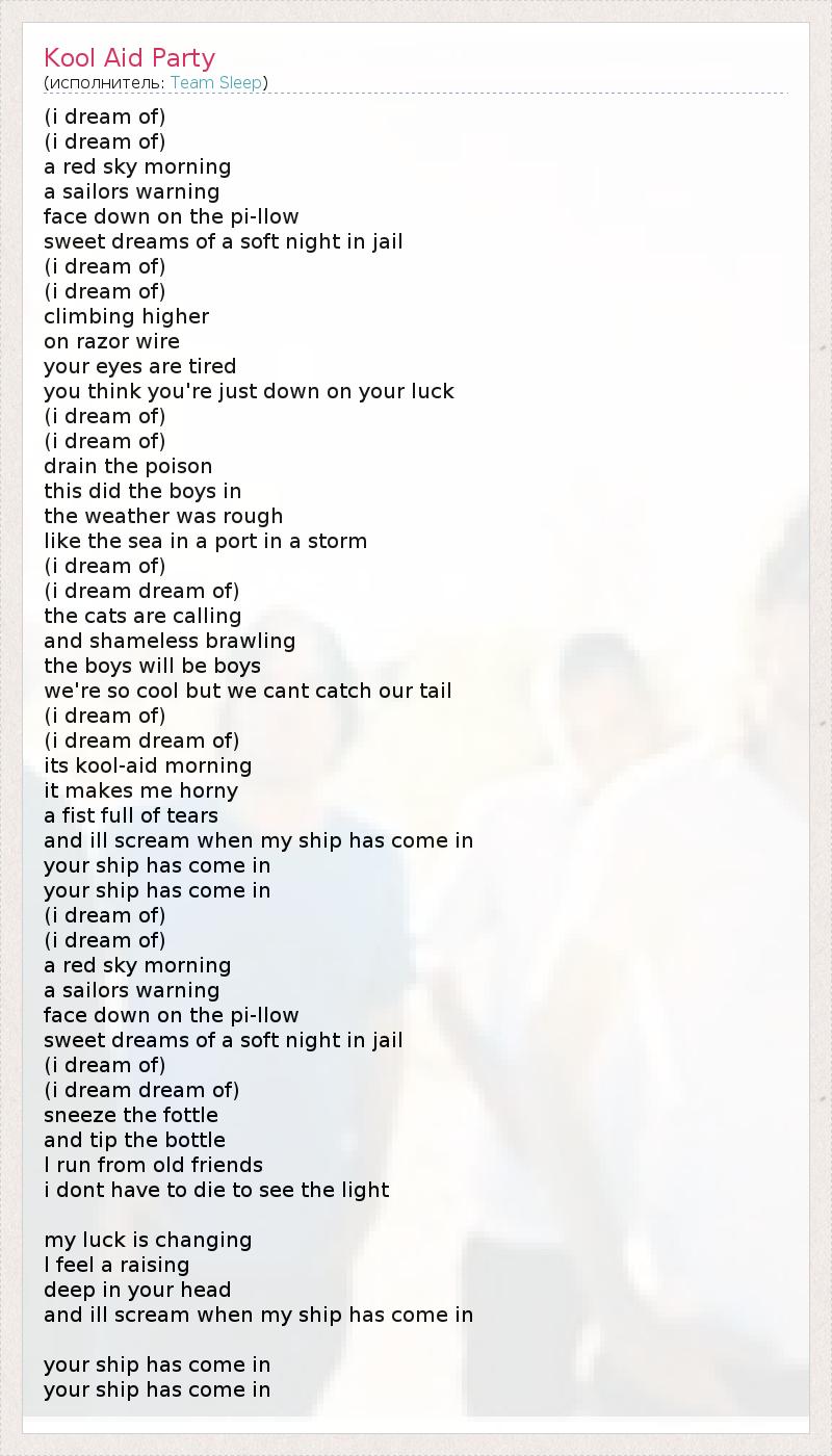 А как ты думаешь, о чем песня "Kool Aid Party" ?