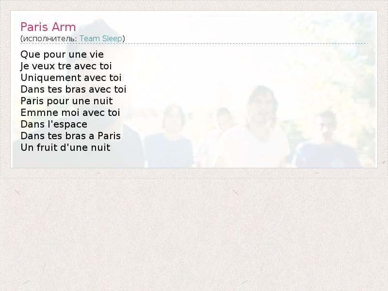 А как ты думаешь, о чем песня "Paris Arm" ?
