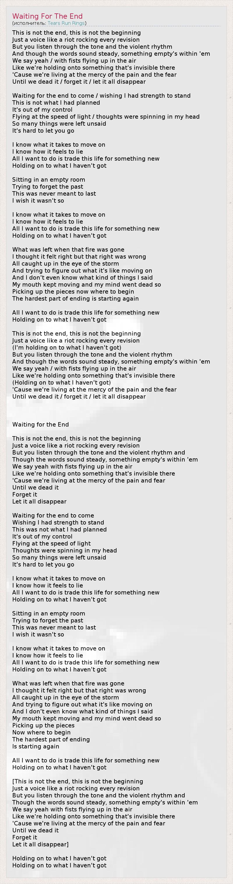 А как ты думаешь, о чем песня "Waiting For The End" ?