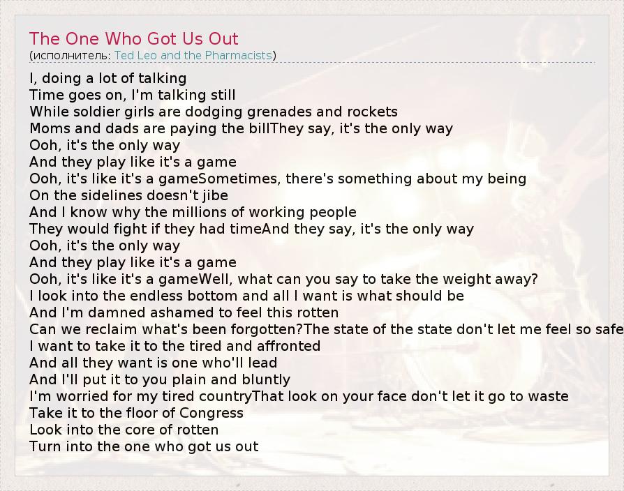 А как ты думаешь, о чем песня "The One Who Got Us Out" ?