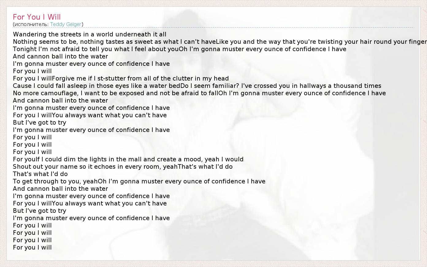 А как ты думаешь, о чем песня "For You I Will" ?