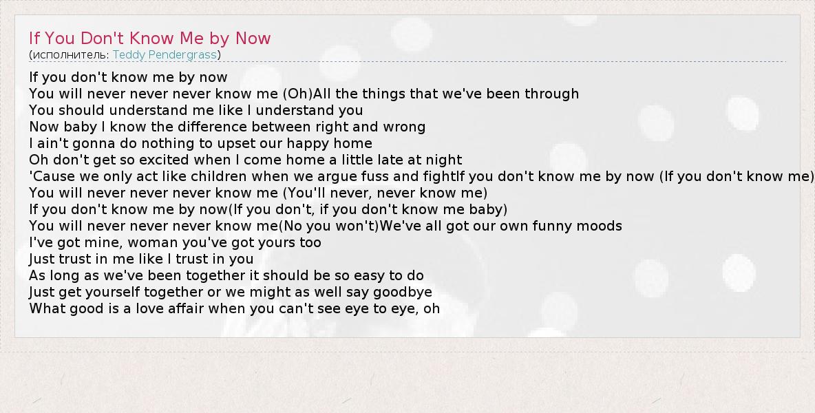 А как ты думаешь, о чем песня "If You Don't Know Me by Now" ?