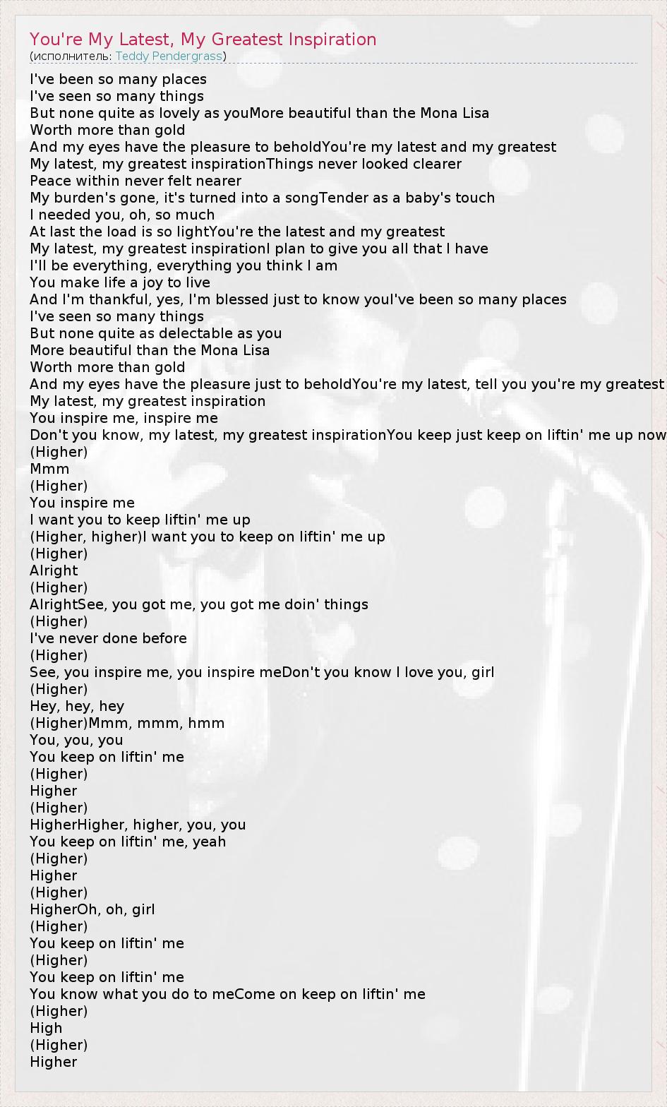 А как ты думаешь, о чем песня "You're My Latest, My Greatest Inspiration" ?
