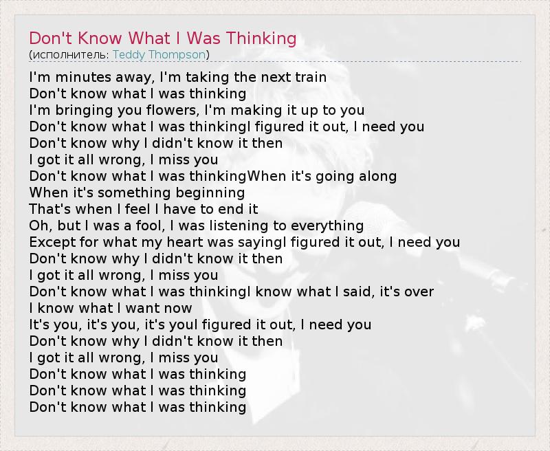 ГлавнаяИсполнителиTeddy ThompsonDon't Know What I Was Thinking