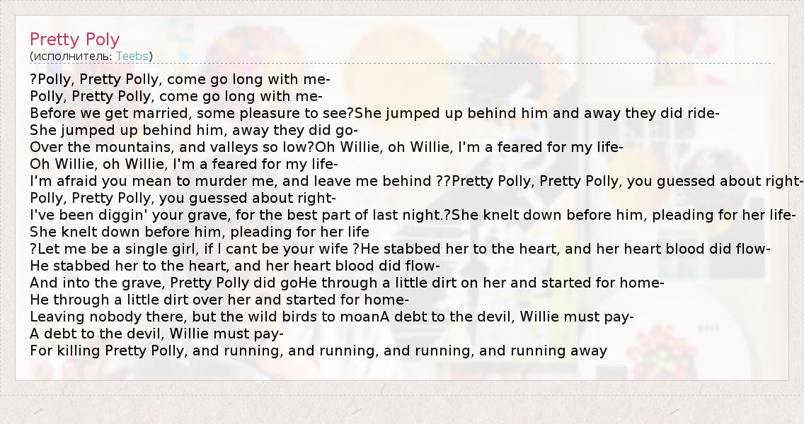 ?Polly, Pretty Polly, come go long with me-