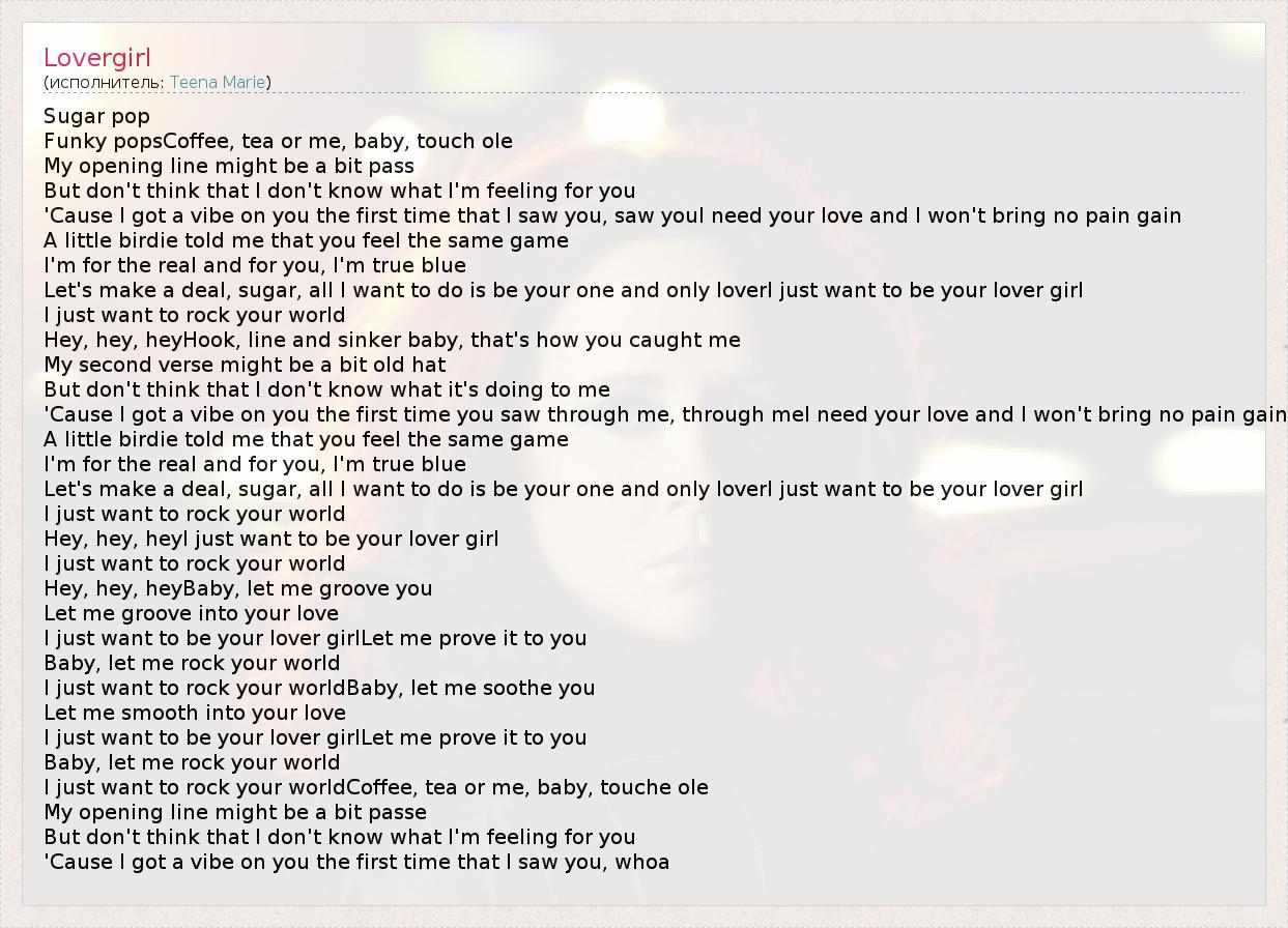 А как ты думаешь, о чем песня "Lovergirl" ?