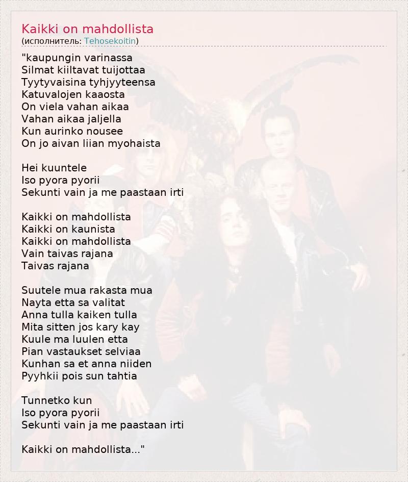 А как ты думаешь, о чем песня "Kaikki on mahdollista" ?