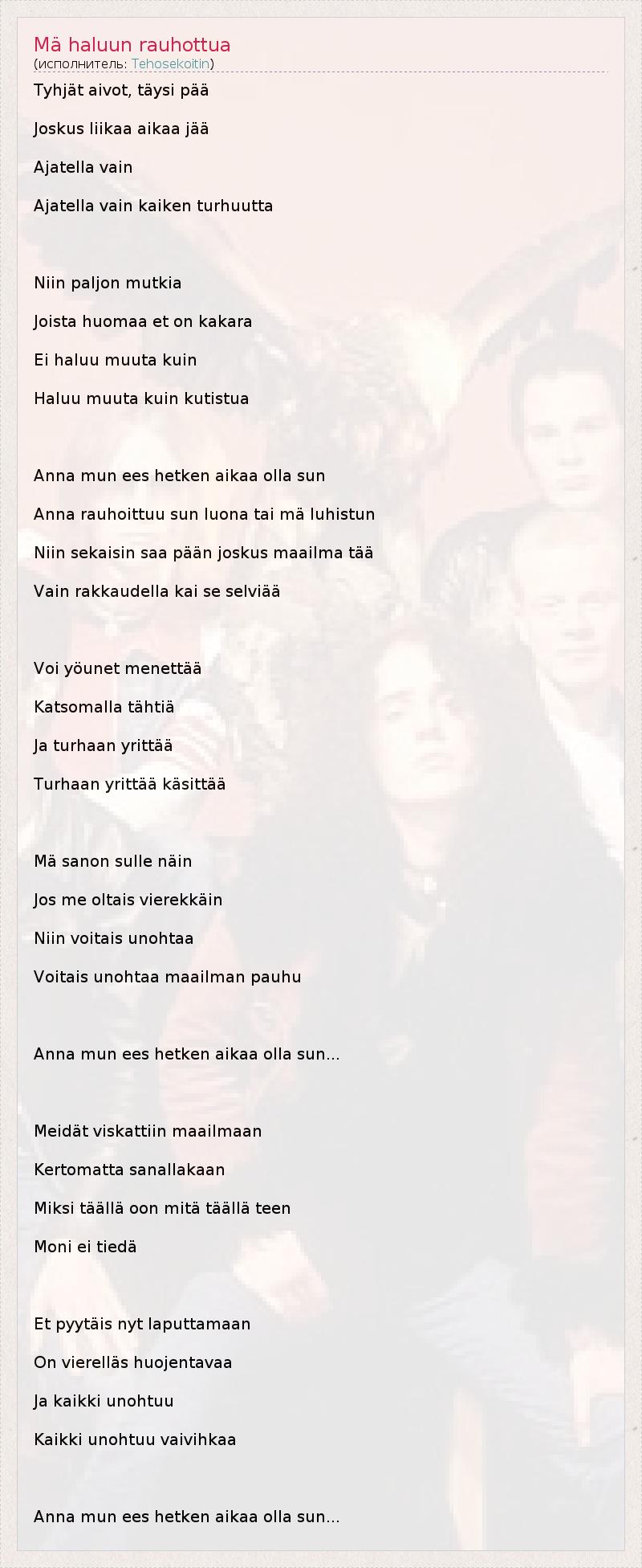 А как ты думаешь, о чем песня "Mä haluun rauhottua" ?