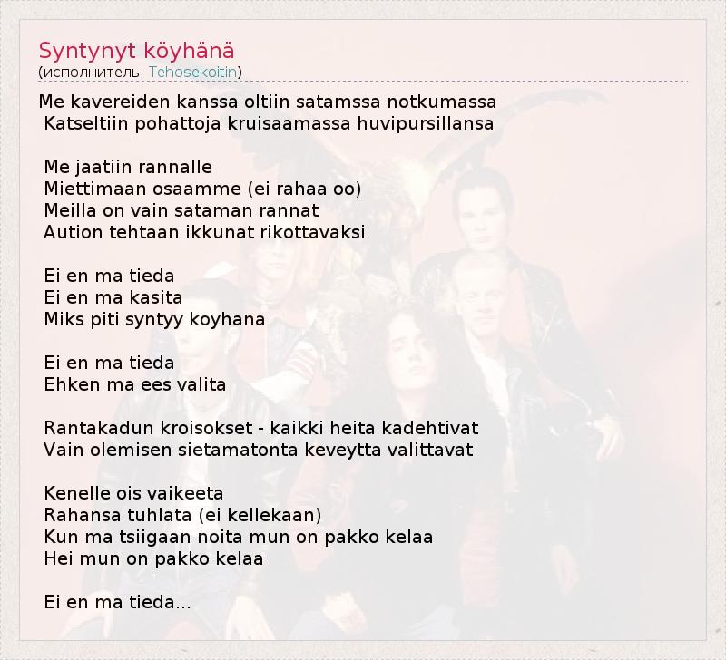 А как ты думаешь, о чем песня "Syntynyt köyhänä" ?