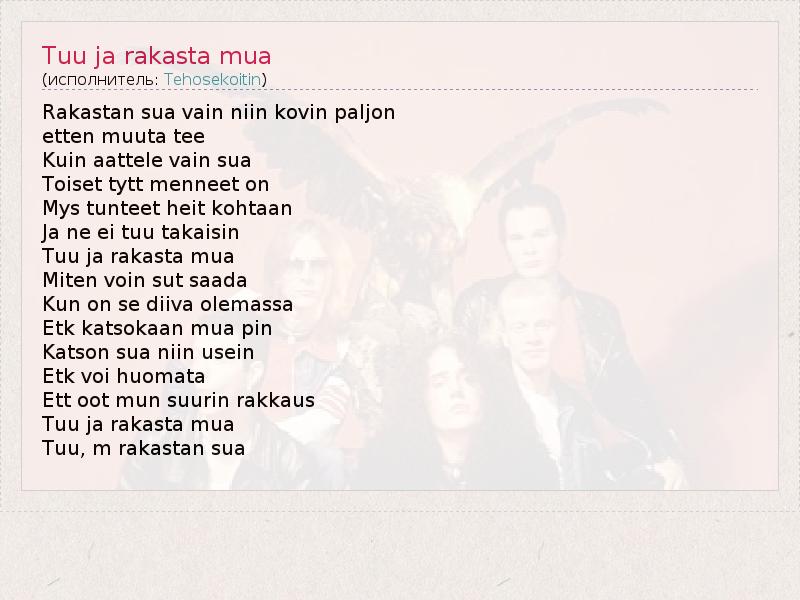 А как ты думаешь, о чем песня "Tuu ja rakasta mua" ?