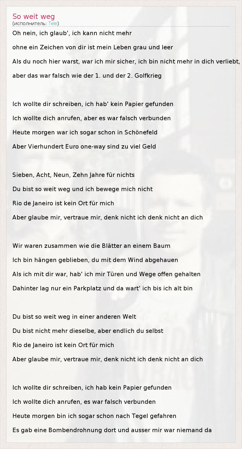 Ich wollte dir schreiben, ich hab' kein Papier gefunden