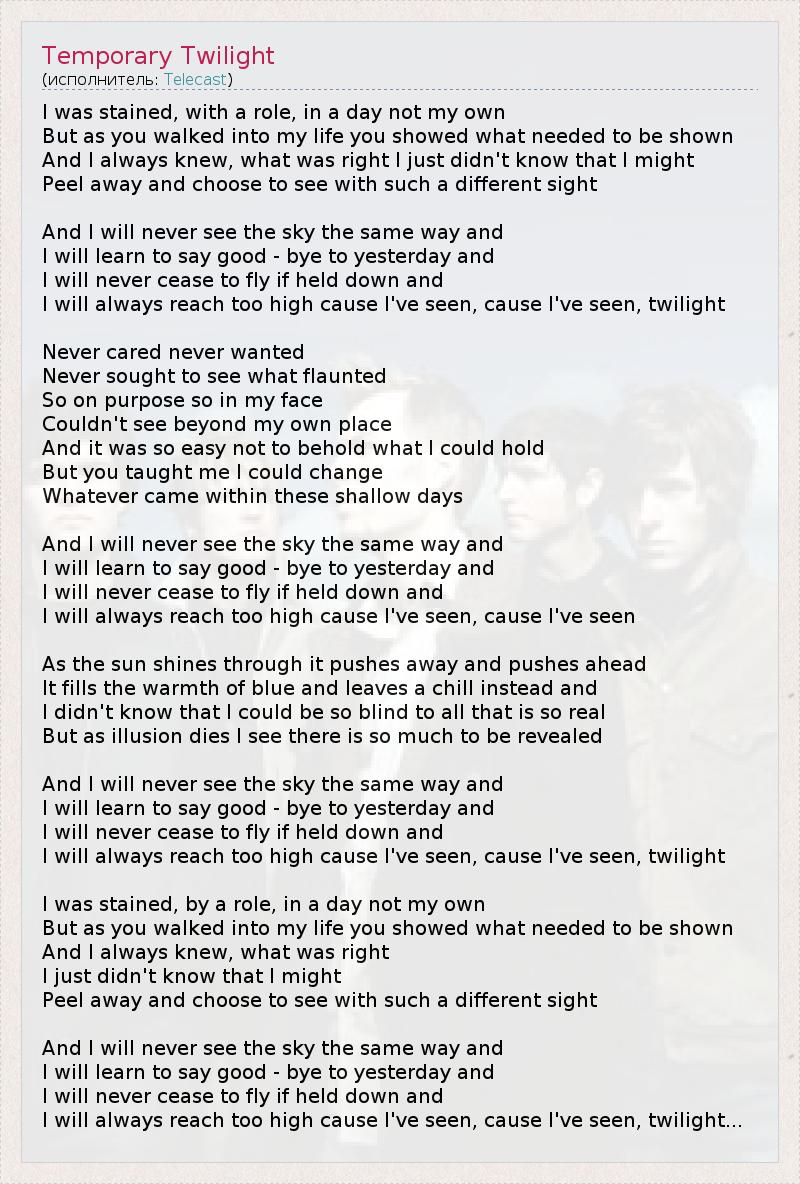 А как ты думаешь, о чем песня "Temporary Twilight" ?