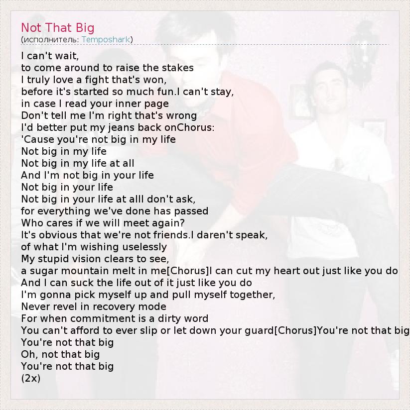 You can't afford to ever slip or let down your guard[Chorus]You're not that big