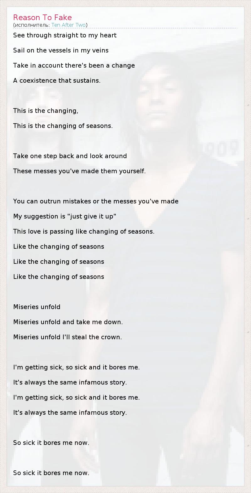 А как ты думаешь, о чем песня "Reason To Fake" ?