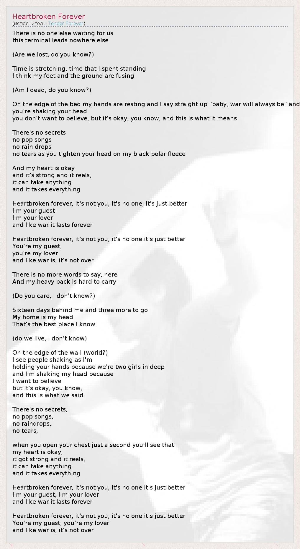 А как ты думаешь, о чем песня "Heartbroken Forever" ?
