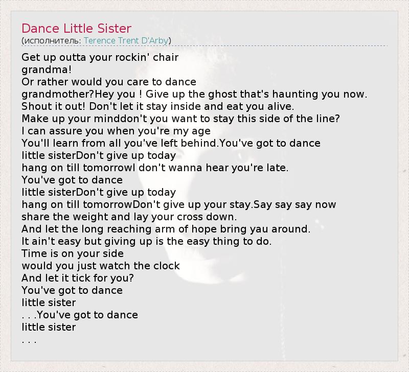 А как ты думаешь, о чем песня "Dance Little Sister" ?