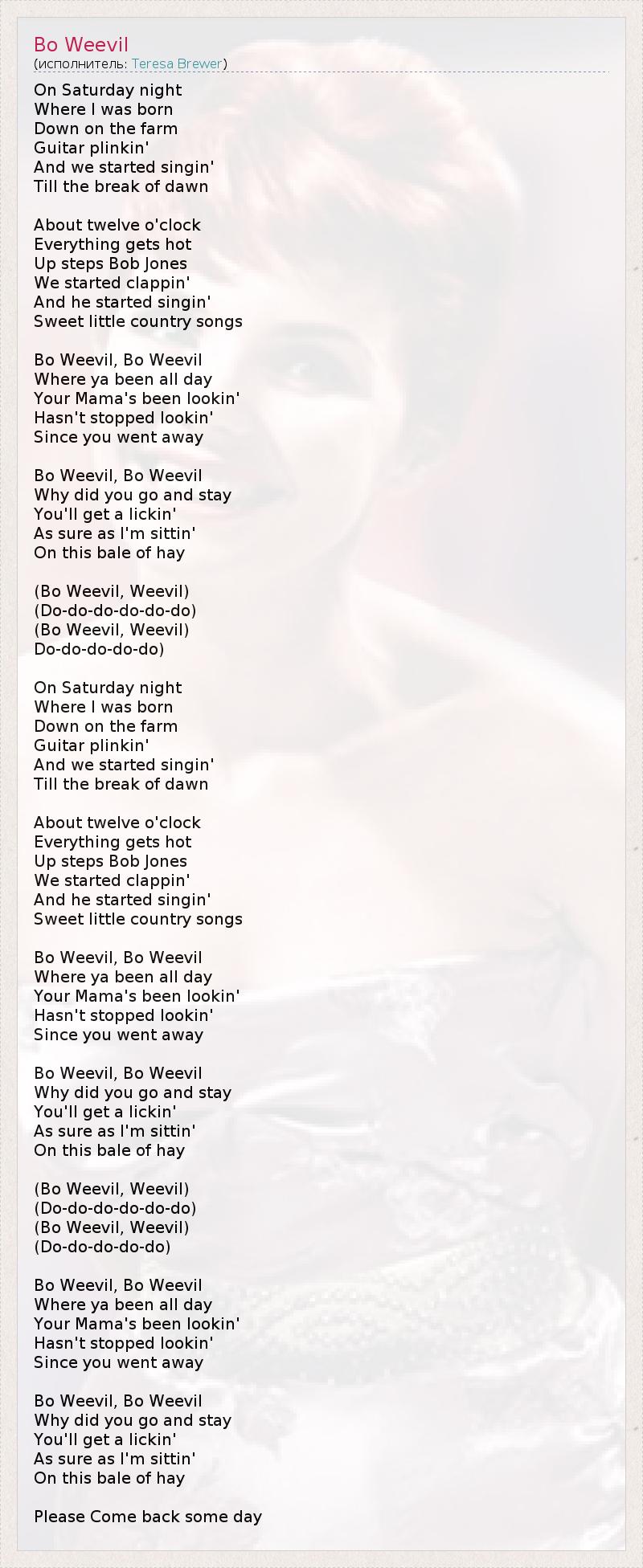 А как ты думаешь, о чем песня "Bo Weevil" ?